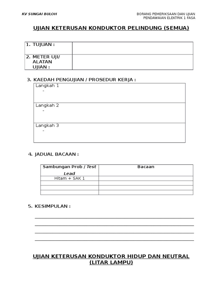 Borang Pengujian Pendawaian Elektrik